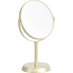 This mirror combines unique visual aesthetics with practical desktop functionality. It features a cohesive gold iron frame with a strong structural presence, standing out particularly well against light-colored walls or wooden backgrounds. The slightly elongated viewing area is designed to facilitate facial grooming. The double-sided mirror features one standard reflective surface and one magnified surface, offering the flexibility to meet various needs—from shaving to detailed makeup application. A weighted base and sturdy iron construction ensure stability on any vanity, while the rotating mechanism allows for precise angle adjustments. Serving as both a practical grooming tool and an exquisite decorative piece, it adds a touch of elegance to any bedroom, room, or dressing area.